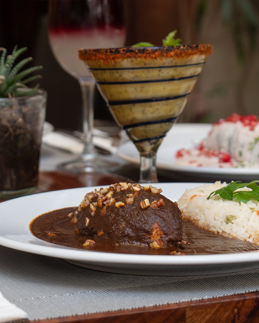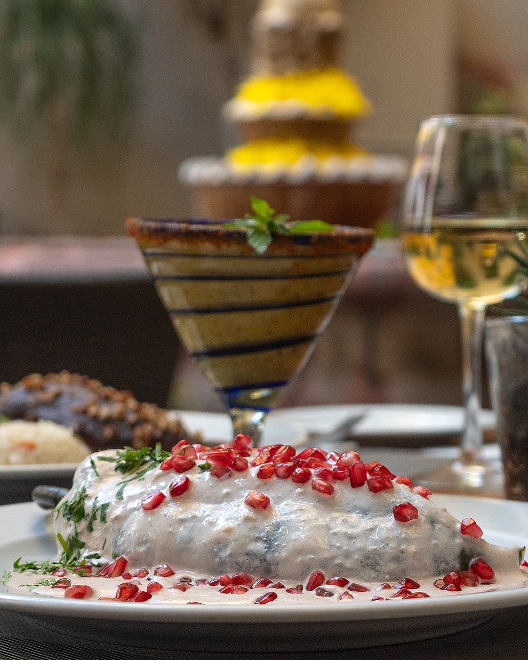 Everyting was delicious - ceviche, chiles en nogada, suckling pig in plum sauce. Set is a beautiful courtyard.